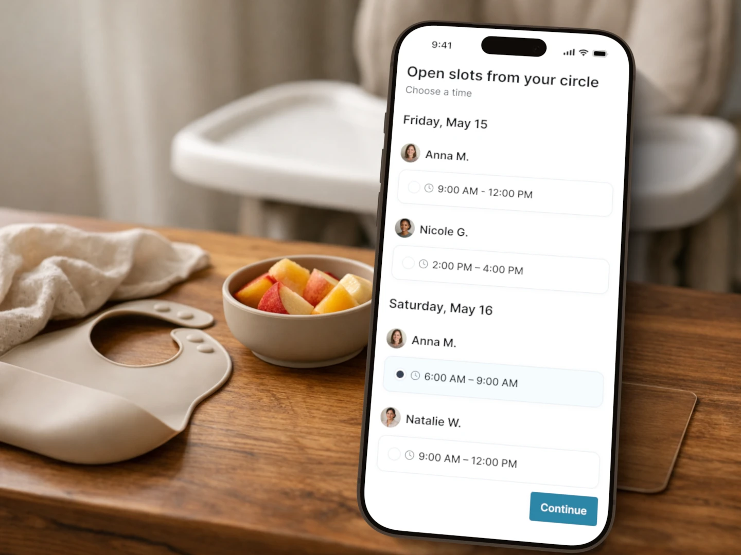 Naptured makes real support feel simple: book in seconds, start with your Circle, and breathe—without awkward asking.