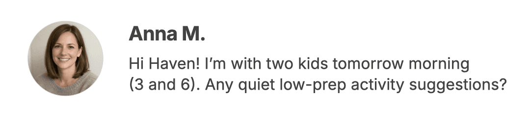 Haven is a calm, steady presence when you’re flooded, exhausted, or unsure—free and always here.